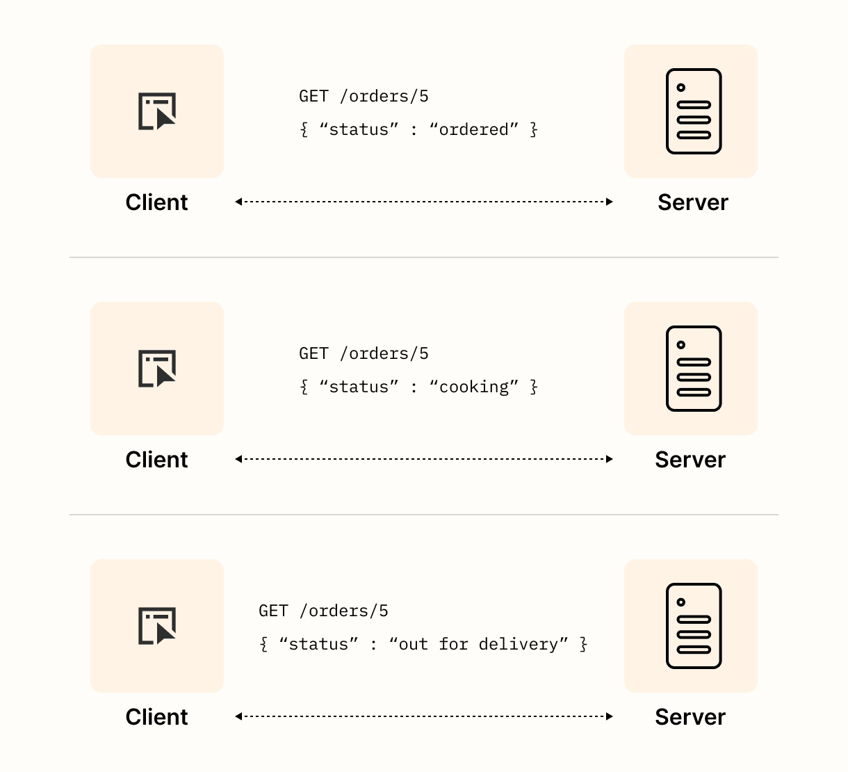 对于我们的比萨店,轮询订单状态可能如下所示。